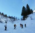 Promesse de journée quasi estivale à moitié tenue… ciel et soleil voilés sans doute le sable du Sahara annoncé. Neige molle parsemée de langues de terre compliquant la glisse …pour Laura et Fabien c’est aussi du sport : descendre , marcher,...