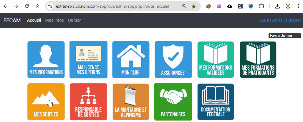 - Cliquer sur "Mes sorties" pour voir et gérer vos inscriptions.