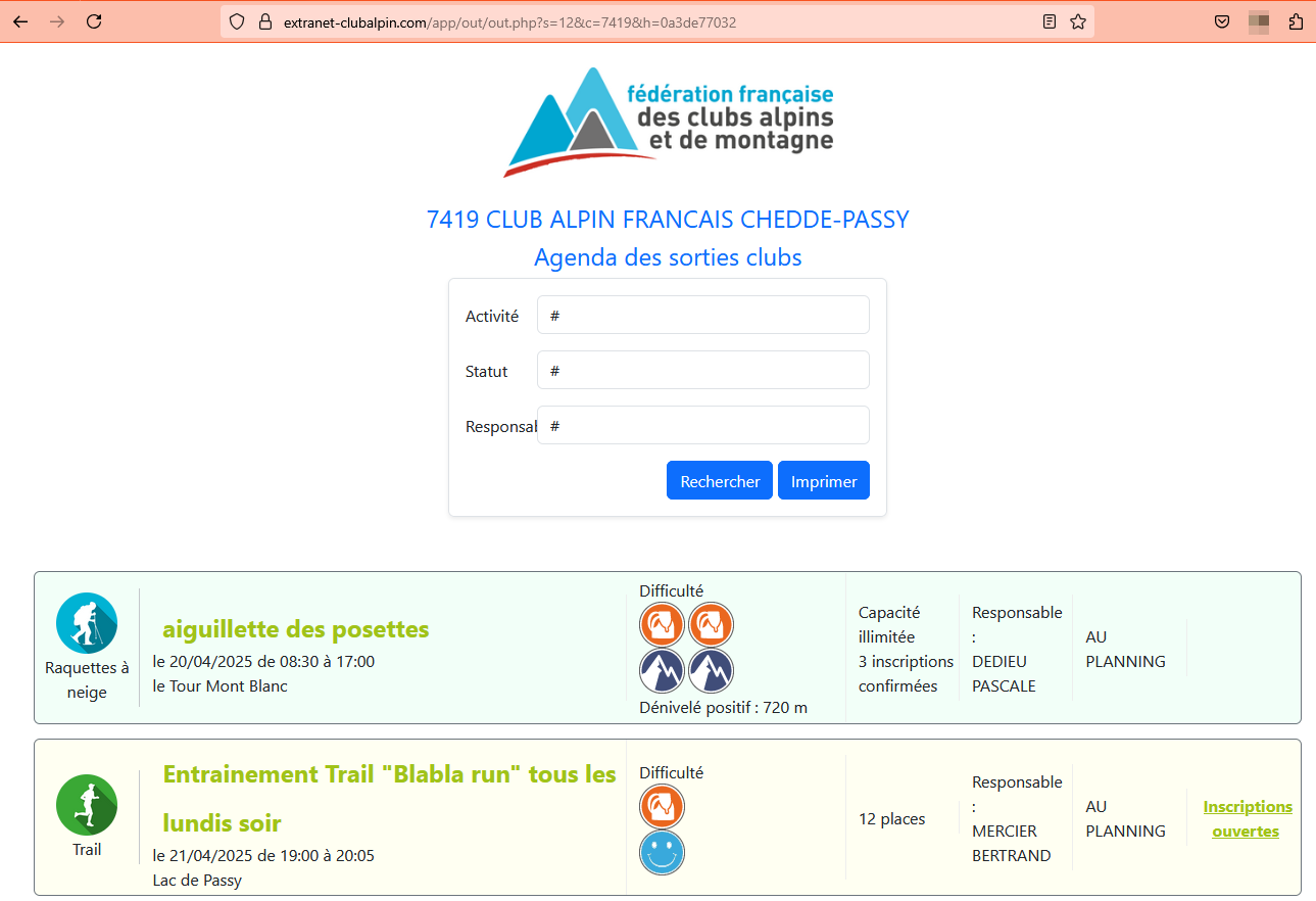En cliquant sur le lien de l'agenda https://extranet-clubalpin.com/app/out/out.php?s=12&c=7419&h=0a3de77032 vous obtenez cette page bien connue: